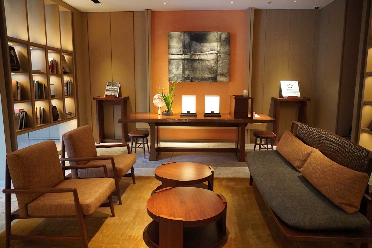 くつろげるソファやインルームダイニングがあるので、ここでルームサービスを取ることもできるんです。朝風呂の後に朝食、なんて贅沢な時間が過ごせますね。「フォーブス・トラベルガイド2024」のスパ部門で4つ星を獲得したと聞いて納得!