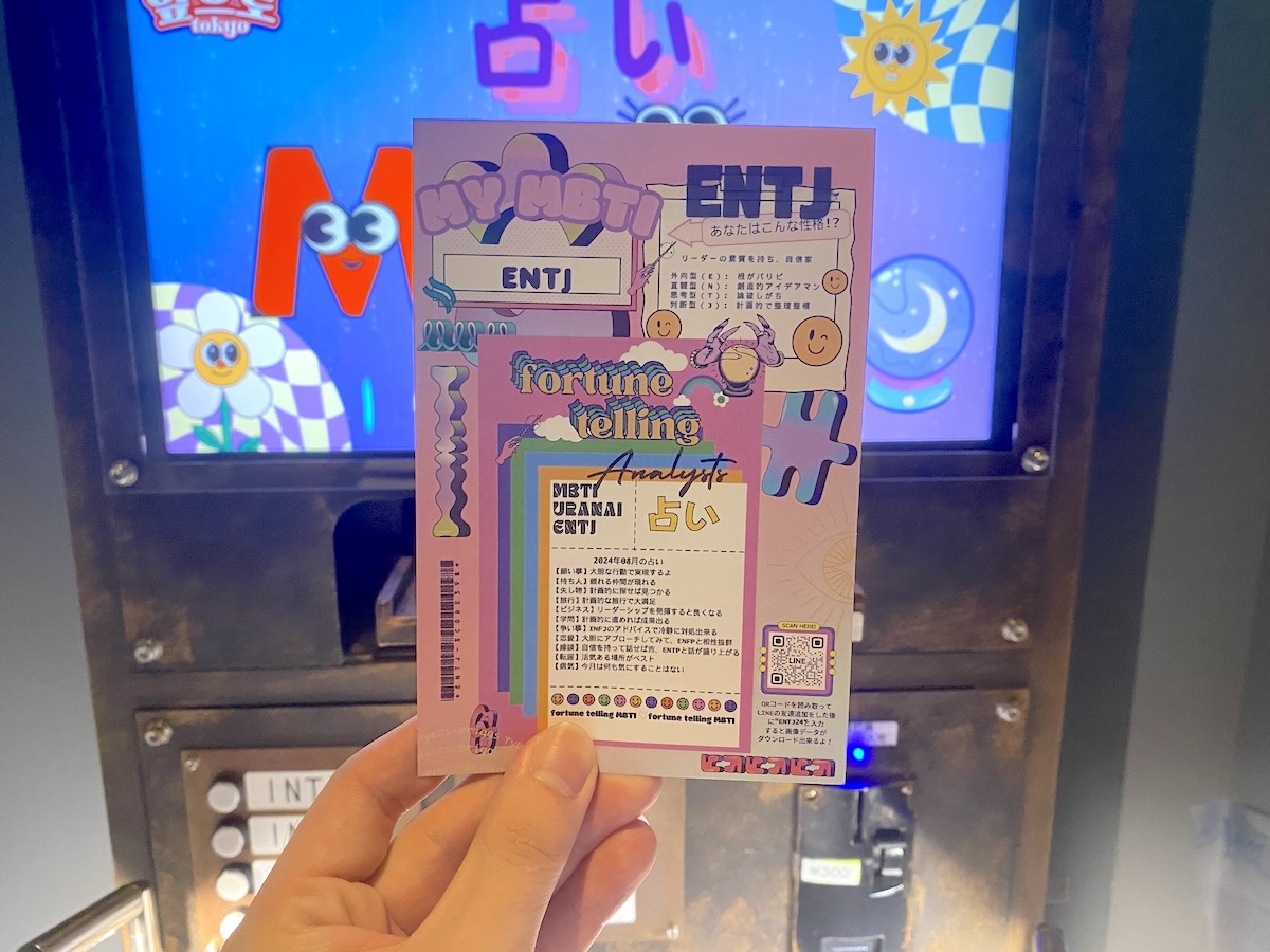 1回300円で体験でき、自分の16性格診断タイプを入力すると占い結果が書かれたカードが出てきます。