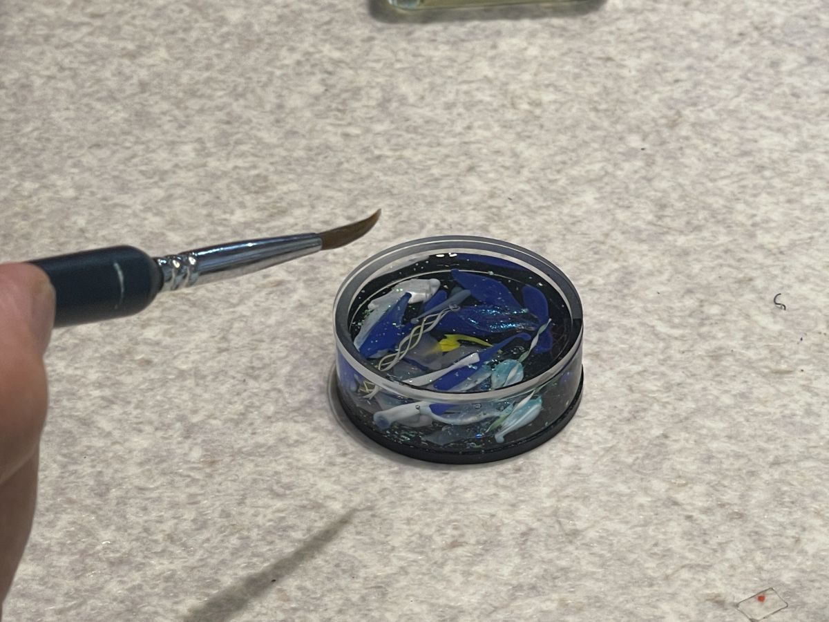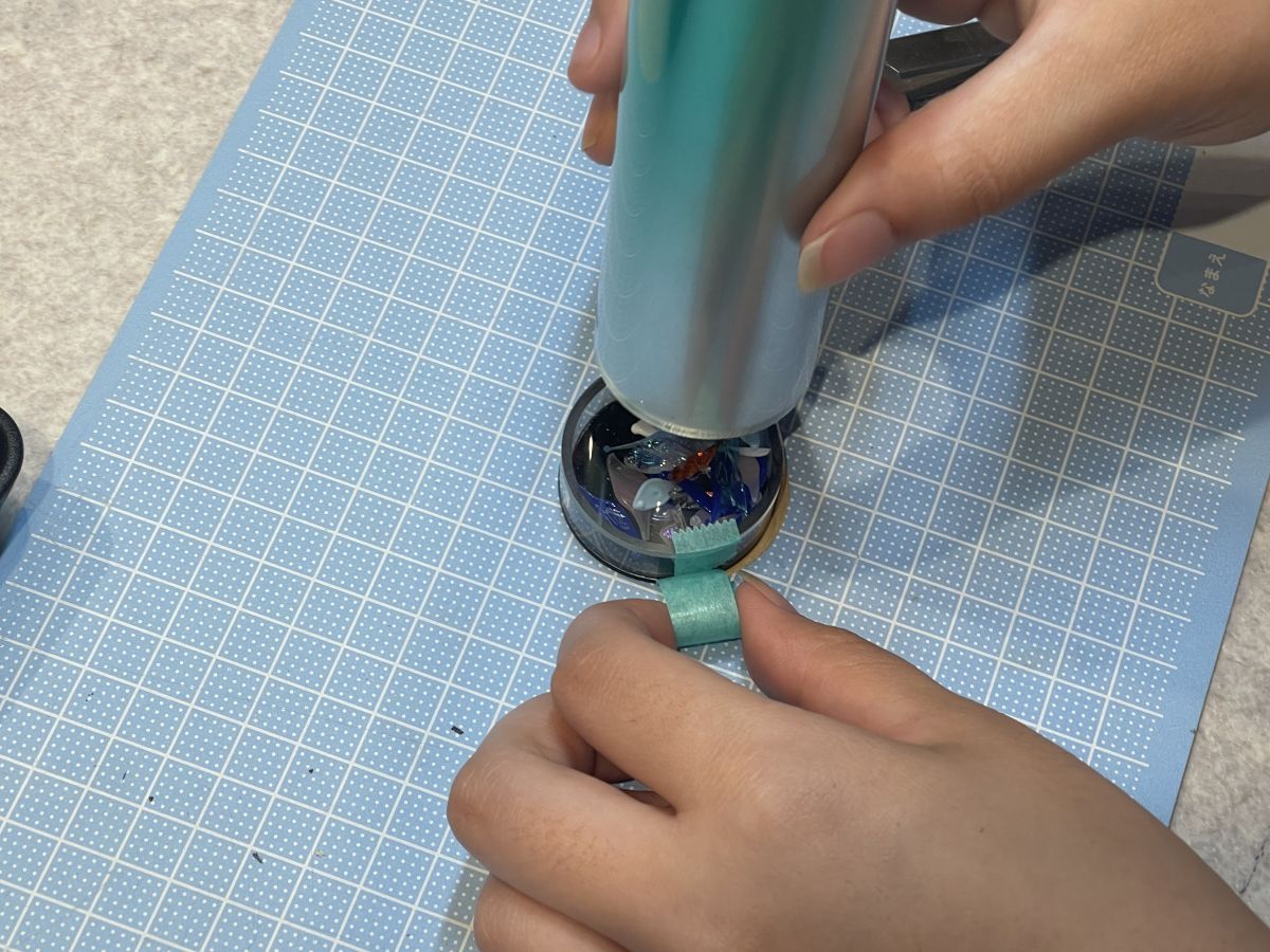 本体と鏡を接着したときと同じ筆で、オブジェクトにふたをします。ふたができたら、本体と接着して完成です。制作時間は約1時間半でした。