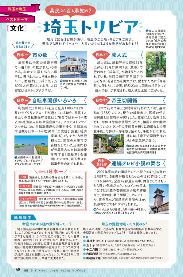 さらに、埼玉県が日本一・日本初となった、知られざる「埼玉トリビア」も。明日誰かに話したくなるトピックばかりです。これを知れば、もう埼玉に「何もない」なんて言わせない!