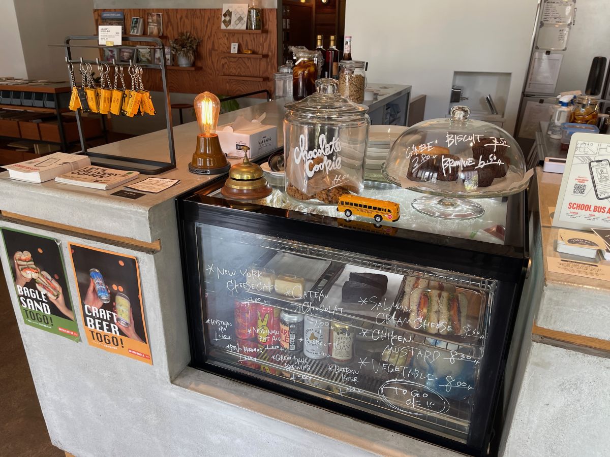 ベーグルは京都の系列店「SCHOOL BUS COFFEE BAKERS(すくーる ばす こーひー べーかーず)」によるオリジナル。