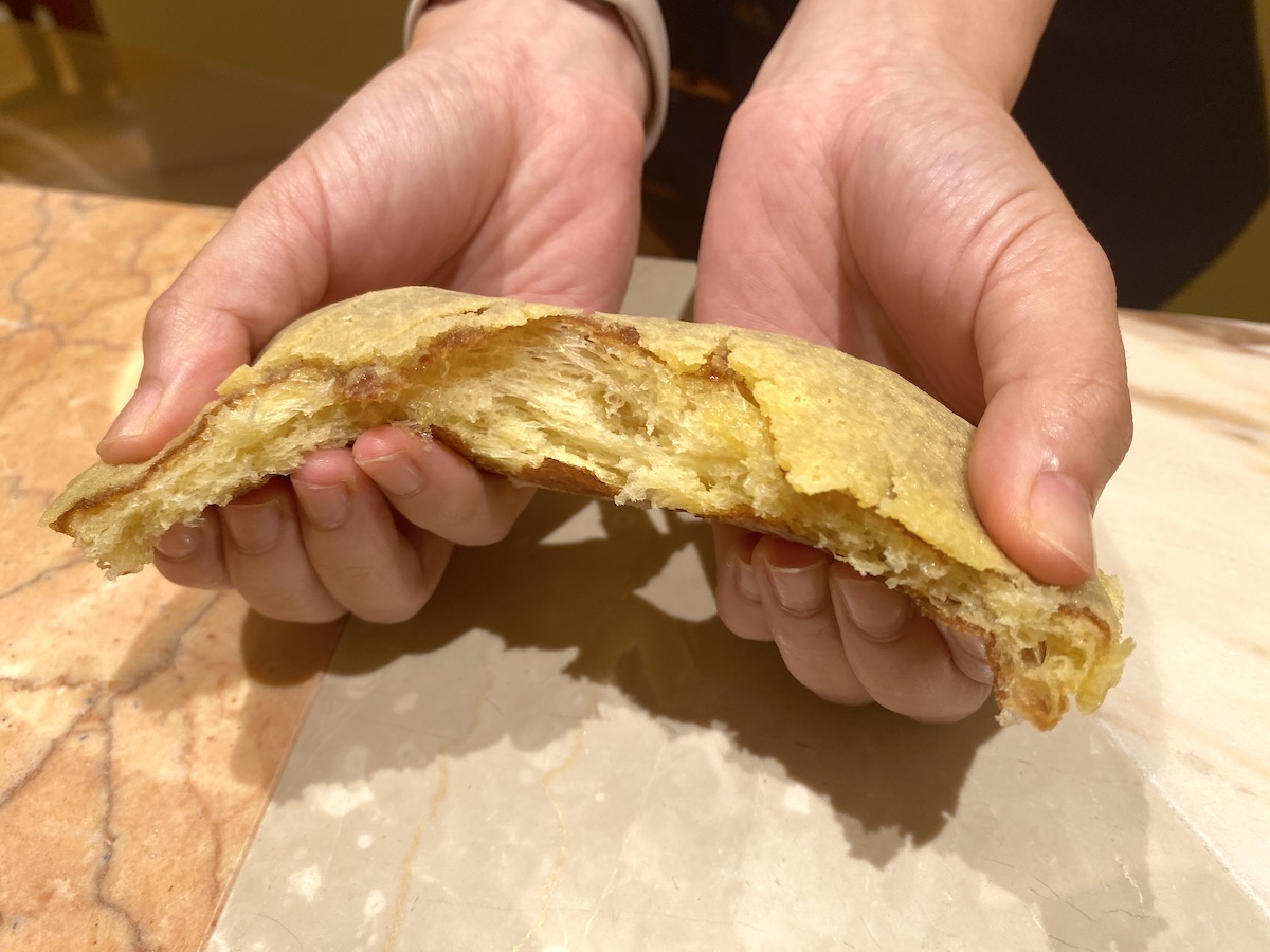 タルトの上にはシュー生地を絞っているので、サクッふわっと2つの異なる食感を楽しめるのがポイントです。鼻を抜けるクロワッサンのバターの香りがよく幸せな気分に。カスタードクリームもなめらかで甘さもちょうどいい仕上がりです。