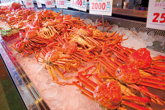 【寺泊魚の市場通り(魚のアメ横)】ずらりと並ぶベニズワイガニは圧巻!