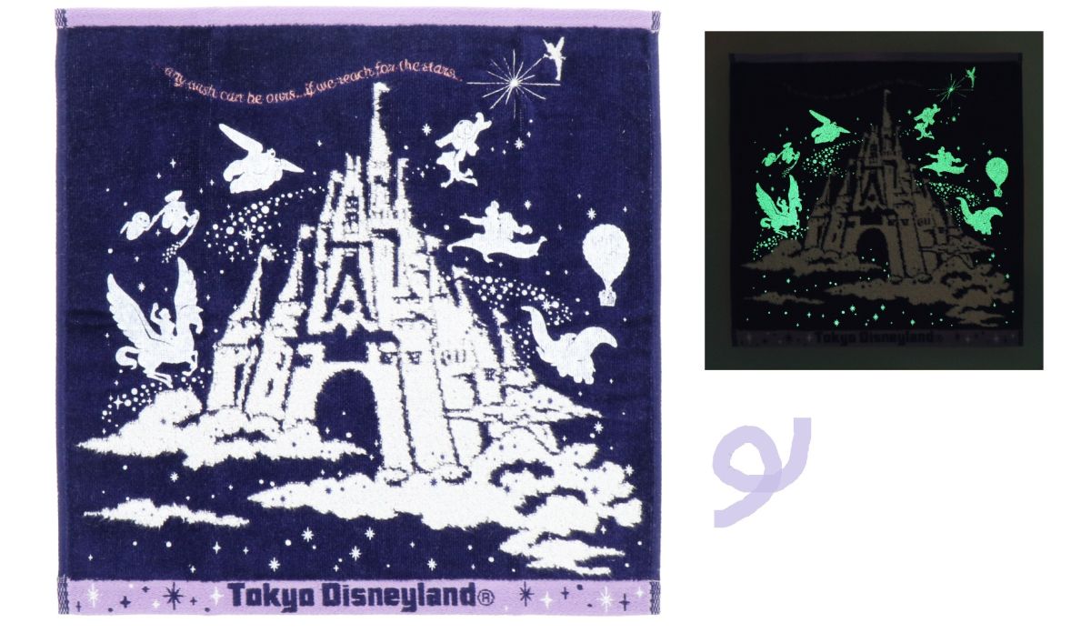 手軽なサイズ感のタオル。キャラクターのシルエットは蓄光性なので暗闇で光ります。