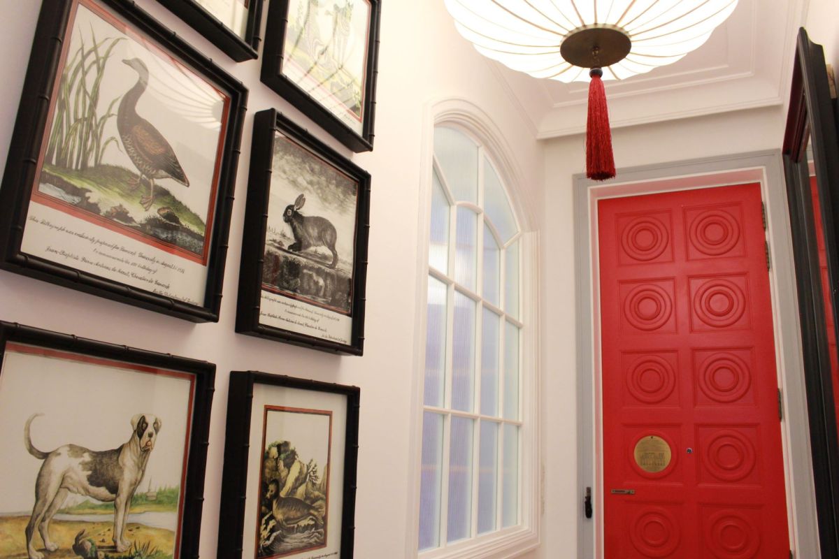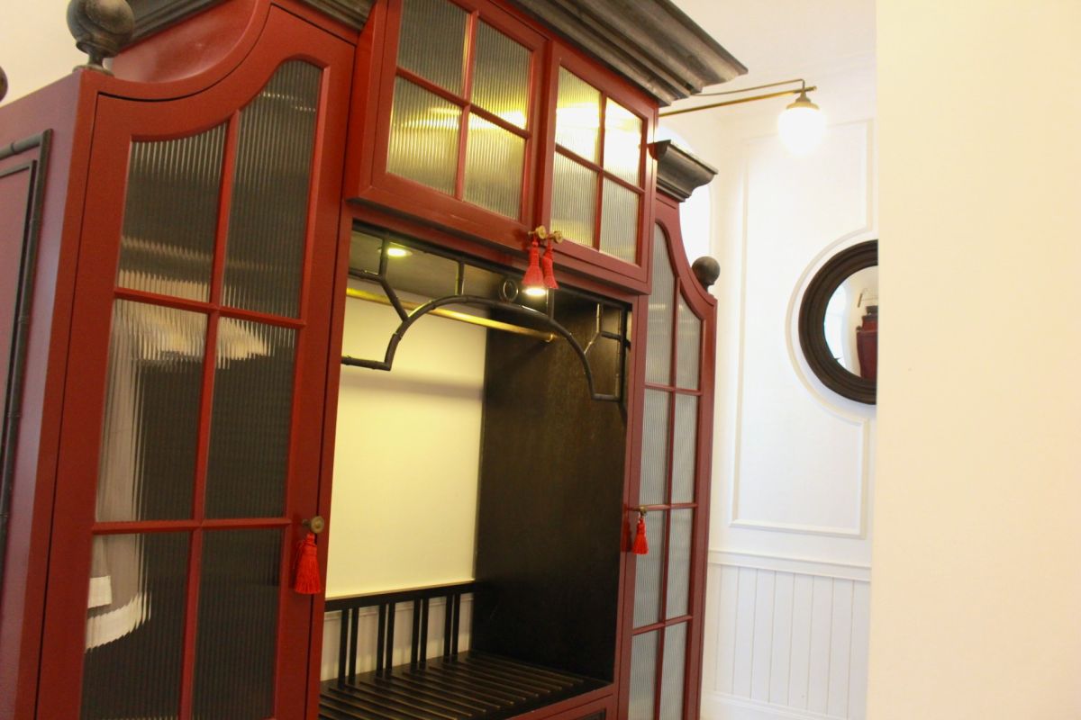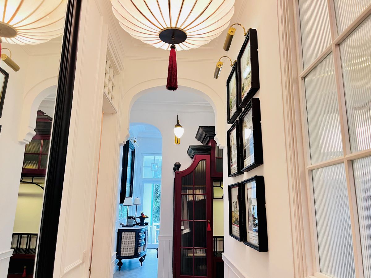 ドアを開けていきなりこんな素敵な廊下が! 上のランタンもおしゃれすぎる。左側には大きな姿見が掛かっています。