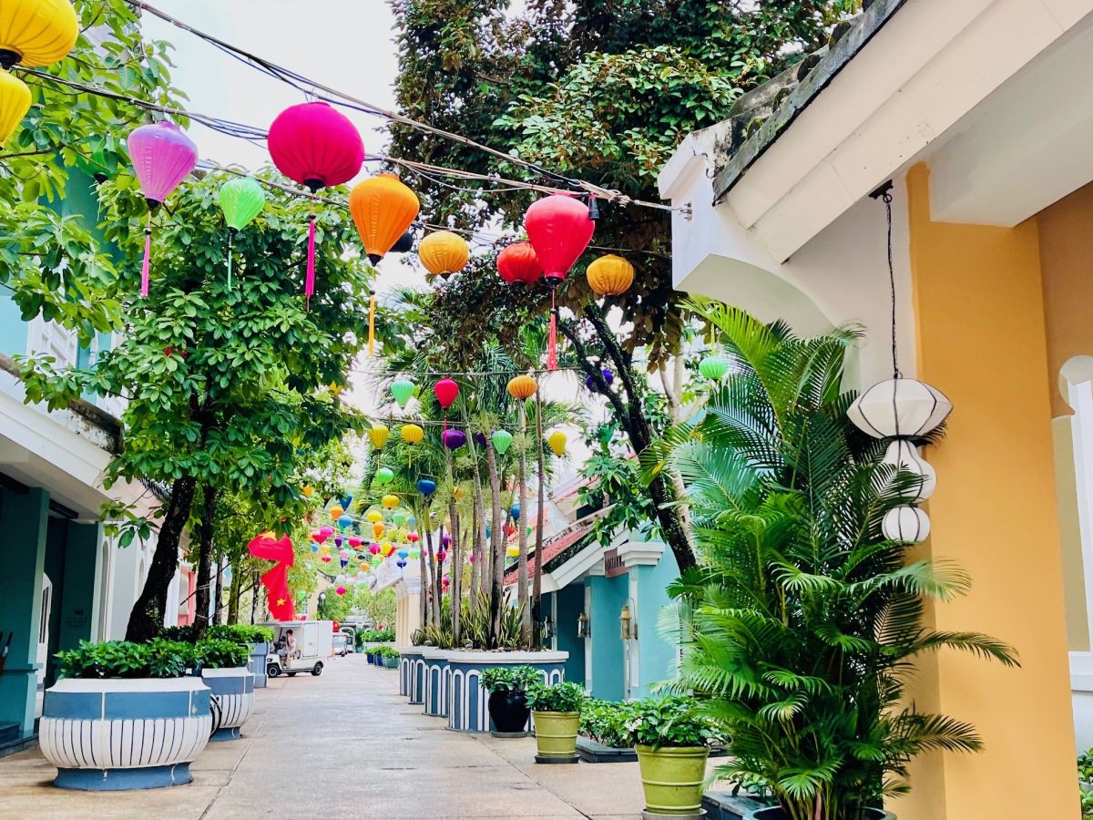 お部屋を思いきり堪能したら、学園内に繰り出しましょう。ベトナムらしいランタンが印象的な街並みで、まるで本当のキャンパスみたい。スパやショップ、カフェやレストラン、ジムなどが並んでいます。