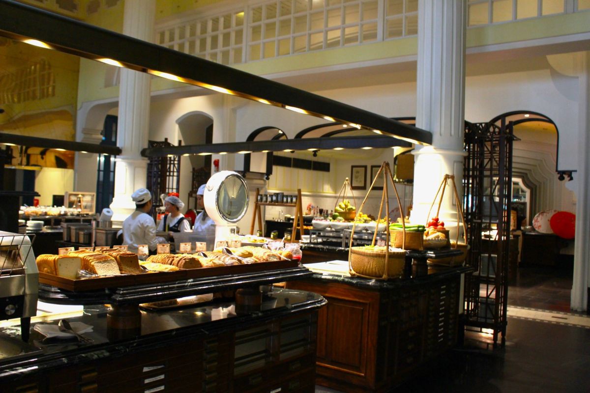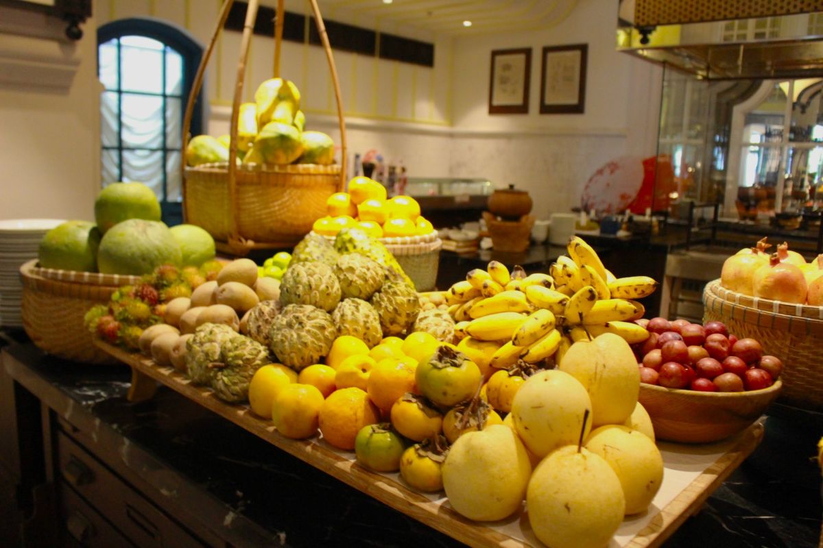 とにかく品揃えが多い。日本では見ることすらなさそうな南国のフルーツや、フランス領だった名残を感じさせる豊富な種類のパン。温かいおかずが並ぶエリアや、パンケーキを作ってくれていろんなジャムを試しながらいただくエリア、スクランブルエッグやオムレツなど目の前で卵料理を仕上げてくれるライブキッチンなどがあります。