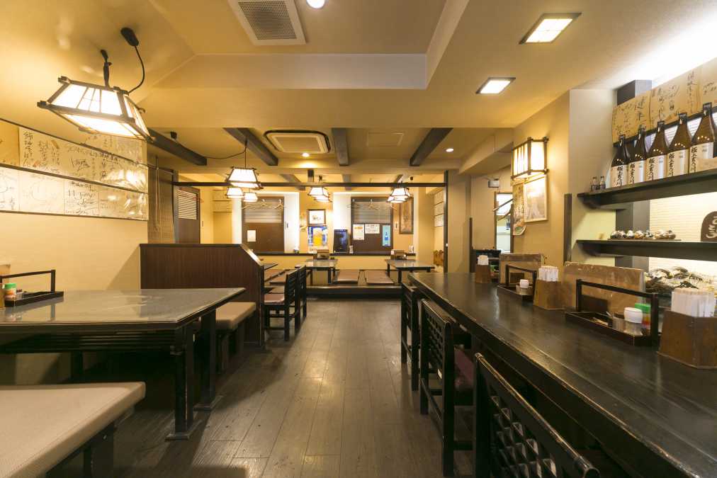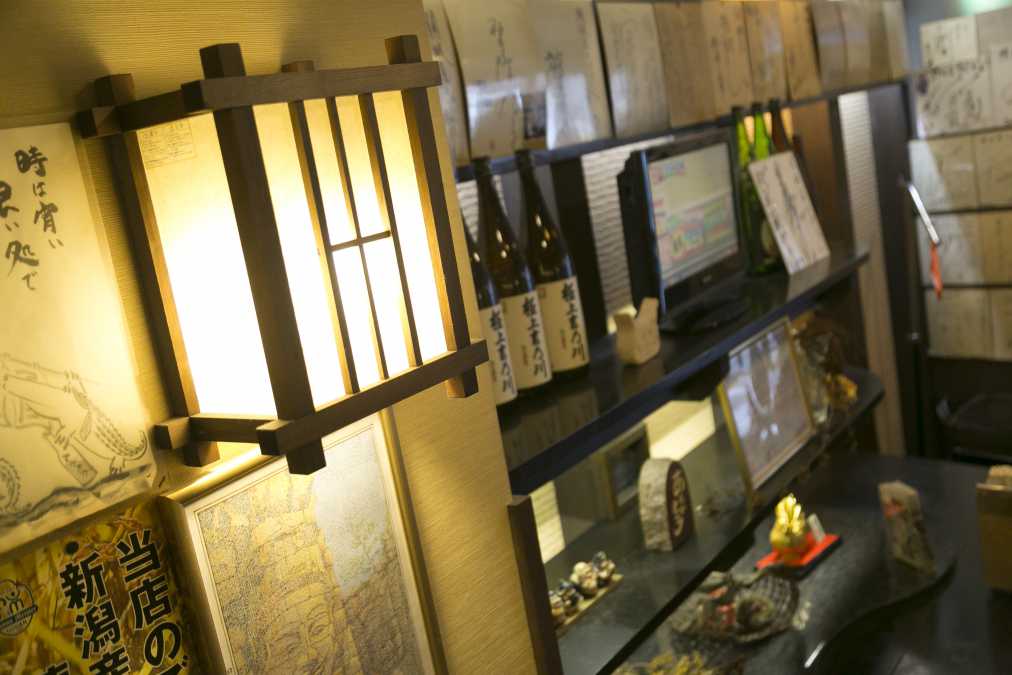 駅から近い好立地の「須坂屋そば 新潟駅前店」ですが、店内は灯籠風の照明や、素朴な調度品が置かれていて、どこかほのぼのとした雰囲気。ついつい長居したくなる環境です。