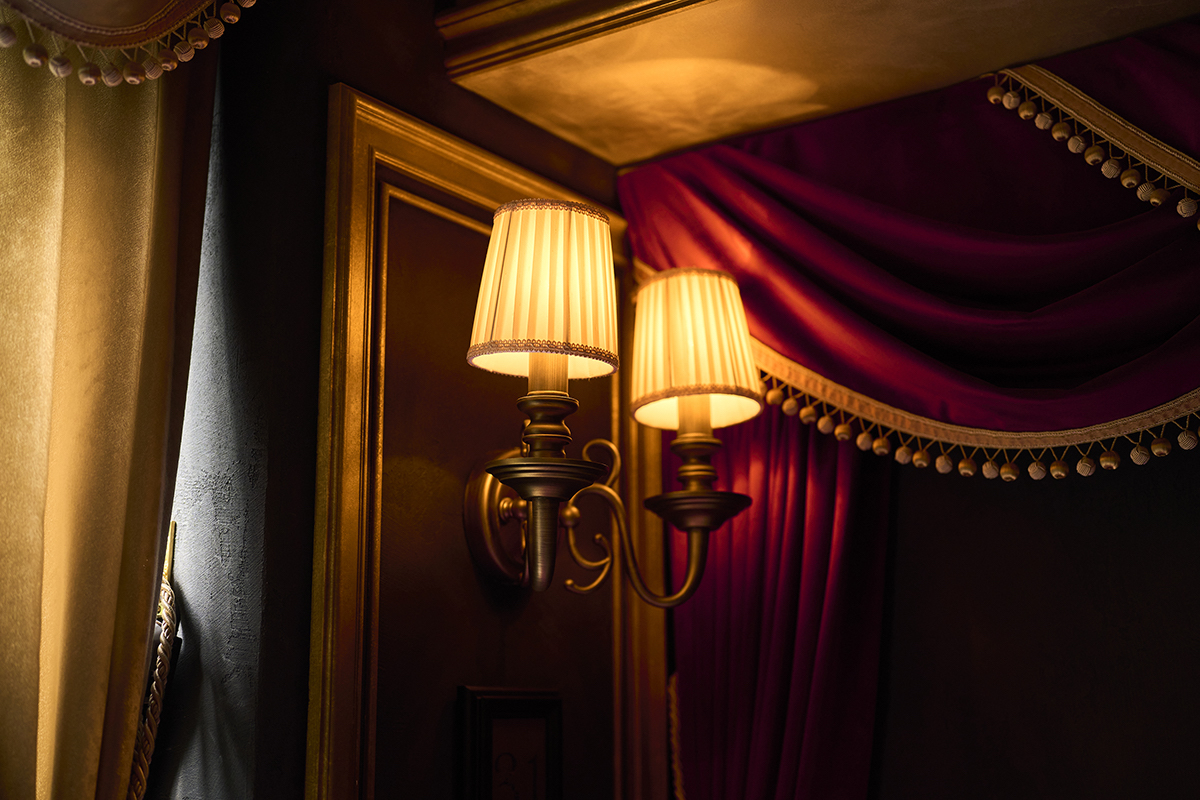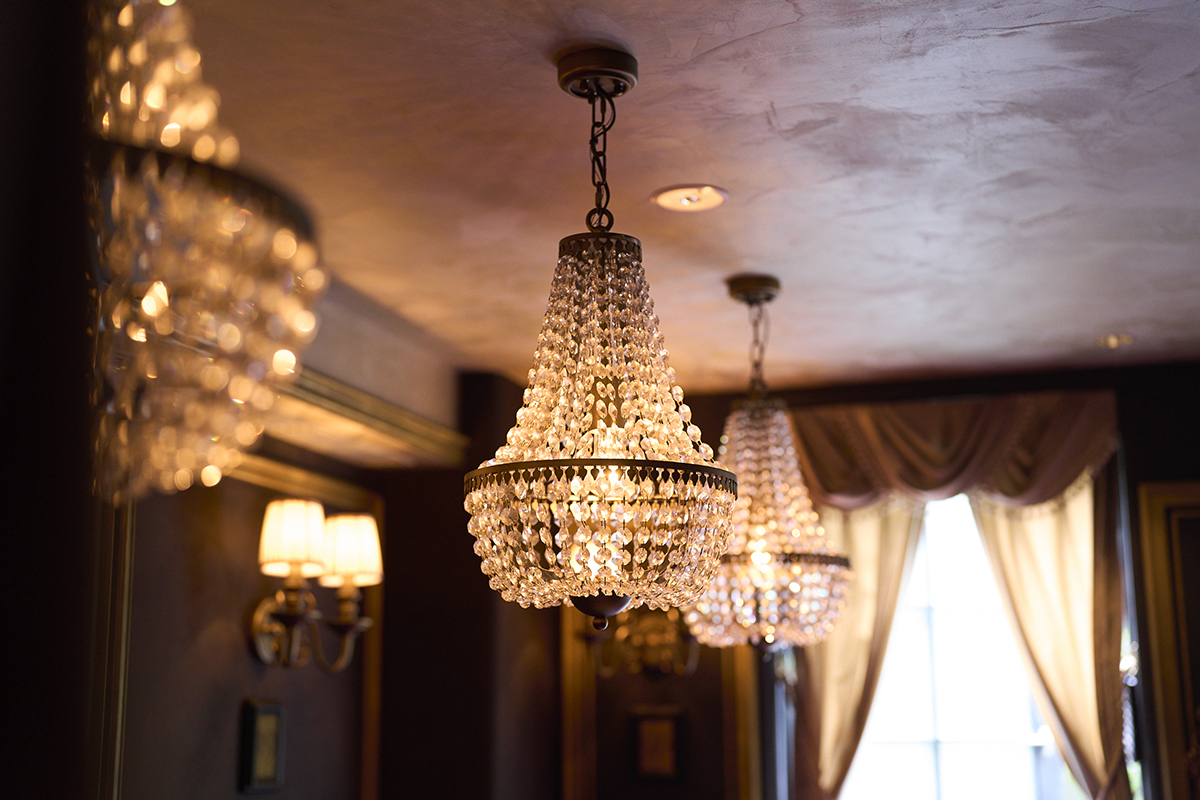 お店の至る所にあるシャンデリアも、とにかくゴージャス。シャンデリアから放たれる温かみのある色合いの灯りが、どこか懐かしい昔の時代にタイムスリップしたかのような気分にさせてくれます。