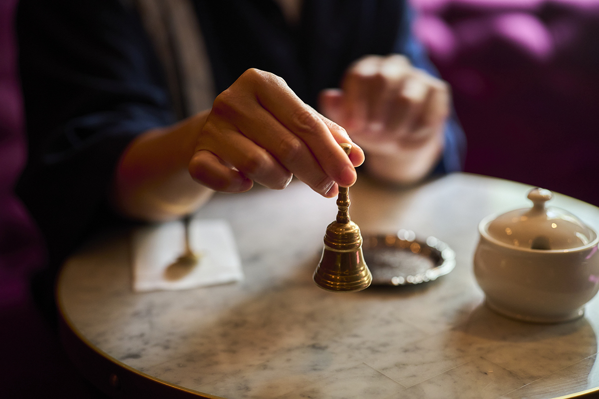 注文が決まったら、テーブルに置いてある小さなベルでスタッフを呼びます。これも、古きよきカルチャー。こうしたちょっとした工夫が、世界観に没頭できるひとつの仕掛けとなっています。