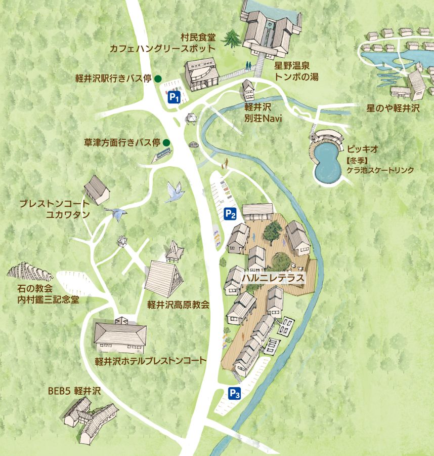 住所:長野県軽井沢町星野 ハルニレテラス、もみの木広場