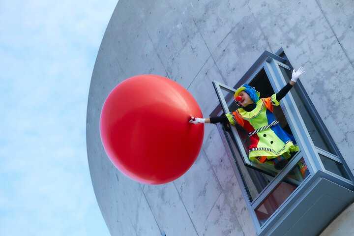 膨らむ夢をイメージ!ピエロによるバルーンパフォーマンス