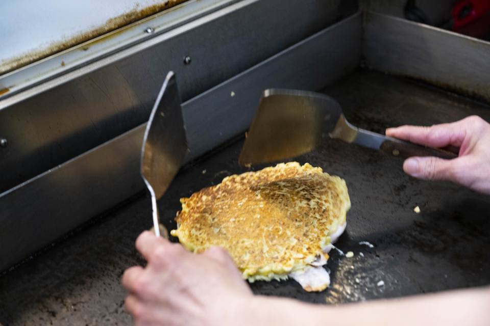 一番人気は、ブタ・イカ・エビ・タコ・玉子が入った具だくさんの「お好み焼 ミックス玉子」。ふわふわっとした食感が特徴で、だしの風味もしっかり利いています。奇をてらわない、万人に愛されるスタンダードな味わいです。