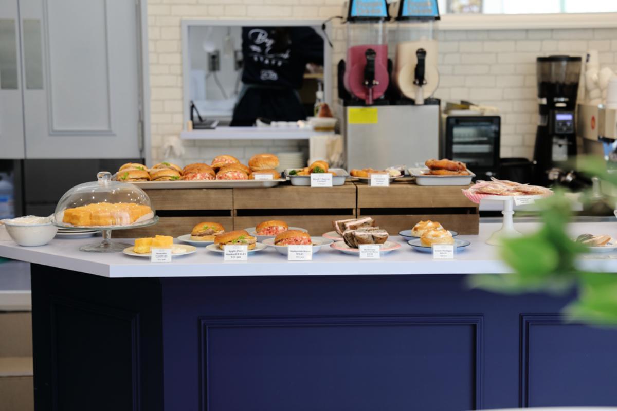 パリの街角にあるベーカリーをイメージしたお店は、週末には満席になることも。店内に入ると、ベーグルやスイーツが並ぶカウンターにまず目を奪われます。