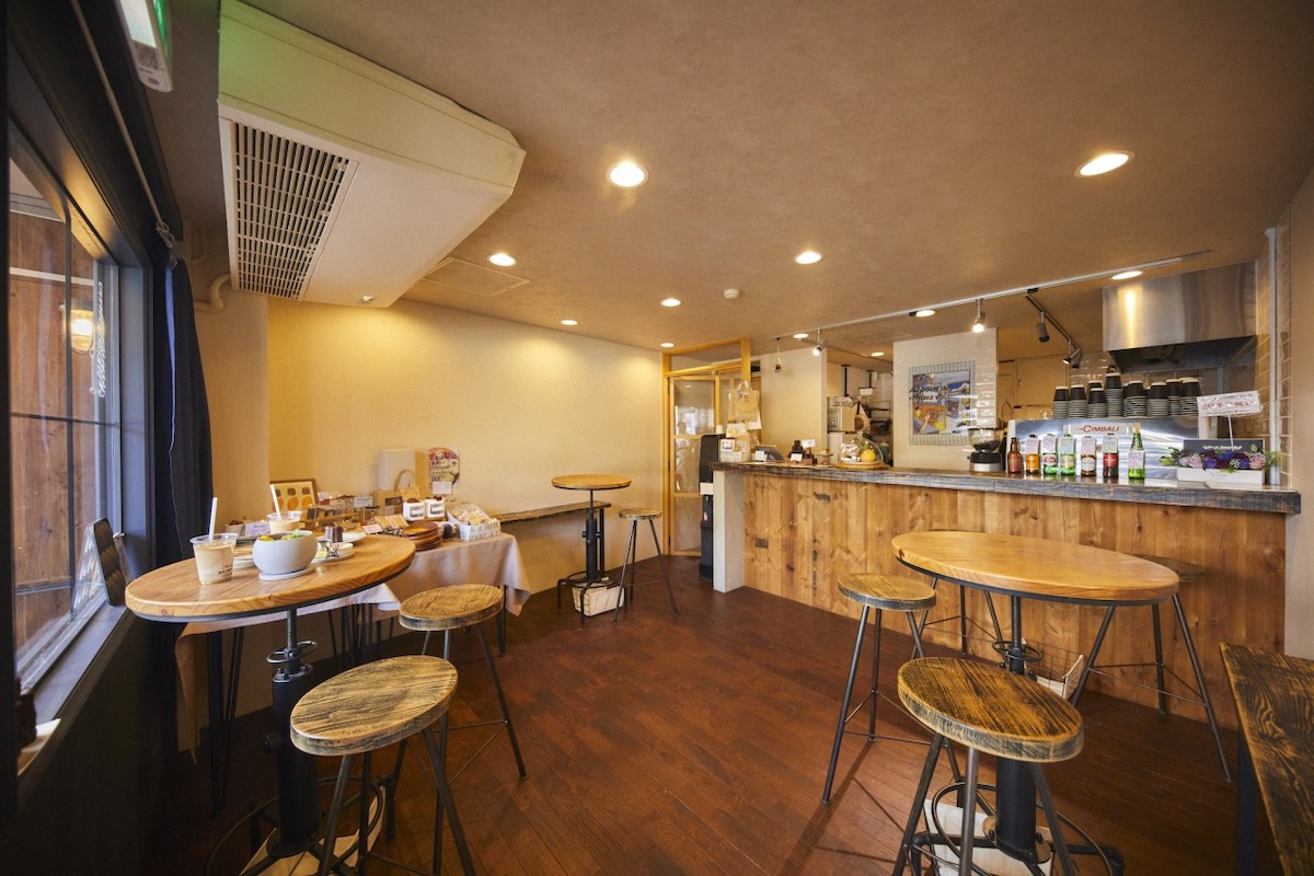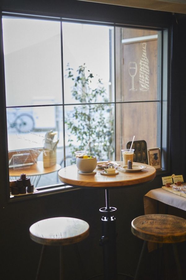 ショップとカフェスペースは共用で、イートイン席は8席ほど。パリの街角のような雰囲気が味わえます。