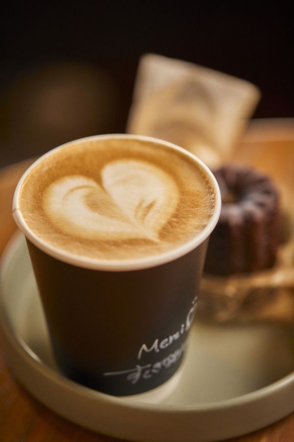 イタリアの老舗エスプレッソマシーンで入れた「カフェラテ」と一緒にいただきます。1個でもかなり満足感のある上品な味。トールサイズのカヌレが3個ぴったりと収まる専用ボックスもあるので、ぜひ手土産に。喜ばれること間違いなしです。