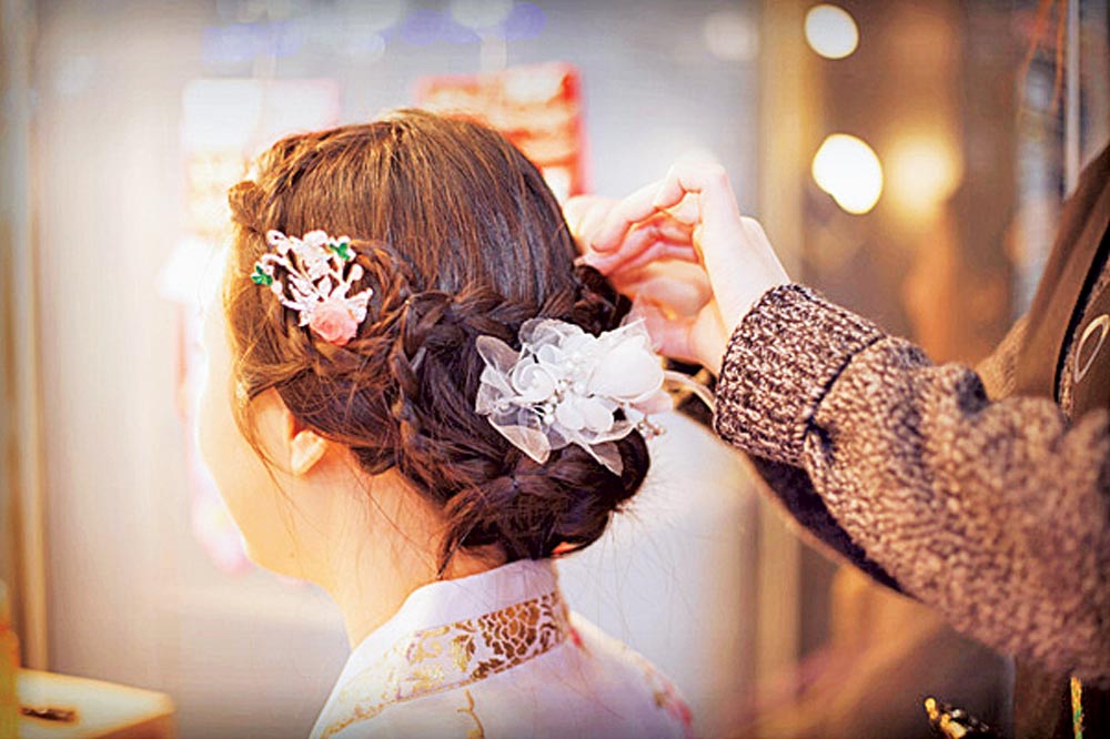 「韓服男」ではヘアアレンジも無料で行ってくれます。(髪飾りをつける場合は別料金)