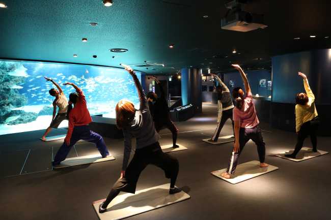 続く6月13日(水)、サンシャイン水族館 館内1階大水槽「サンシャインラグーン」前で開催されるのは「海の中の水族館ヨガ(朝ver.)」。海の生き物たちが泳ぎ回る空間での朝ヨガもまた神秘的!