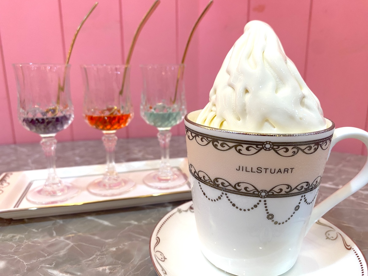 「LiQumu(りきゅーむ)」は原宿にあるアイスクリームカフェ。ピンクを中心に彩られたキュートな空間では、こだわりのソフトクリームに好きなリキュールをかけて味わう「リキューム」のほか、キュートな演出がほどこされたアフタヌーンティーセットなどを楽しむことができます。