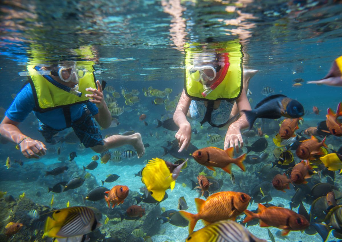 オアフ島唯一のプライベート・ラグーン「レインボー・リーフ」は、ハワイ近郊のサンゴ礁が再現されており、何百匹もの熱帯魚を間近に見ながらシュノーケリングを楽しめます。リーフの外側にあるビューイング・ウィンドウからは、水中を覗いたり写真撮影もできますよ。