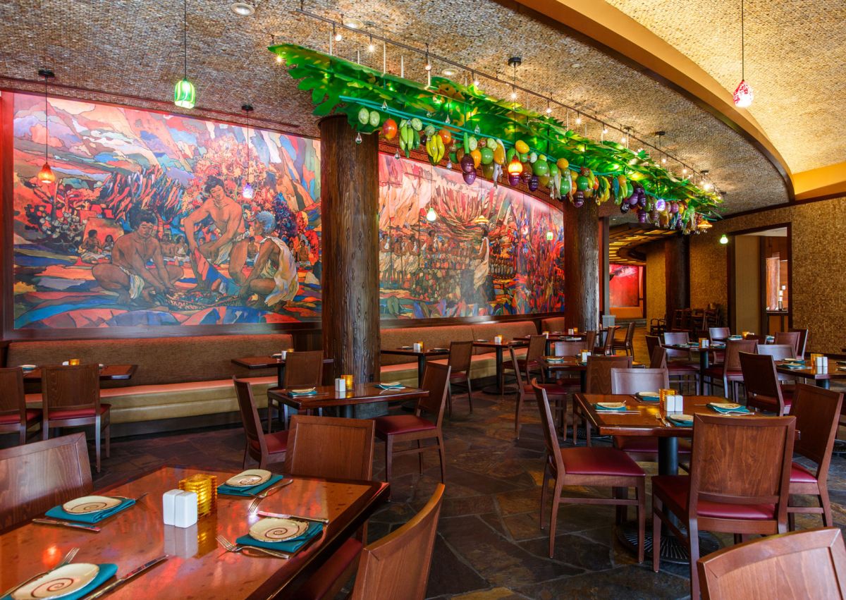 ハワイの伝統的な収穫祭をイメージした、ファミリー向けのレストラン「マカヒキ」。朝食の時間帯は、ディズニーのキャラクターたちと出会えるスペシャルタイム。夜は旬の食材をふんだんに用いた3コースディナーがサーブされます。