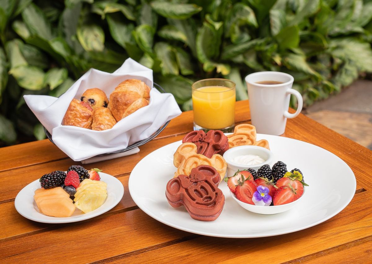 キッズ用の朝食メニューは、ミッキーマウスとミニーマウスの形がキュートな特製ワッフル。大人用のワッフルもミッキーマウスとミニーマウスに交換できるので、ご希望の場合はぜひリクエストしてください。フォトジェニックでおいしいブレックファストとともに楽しい一日をスタートしましょう。