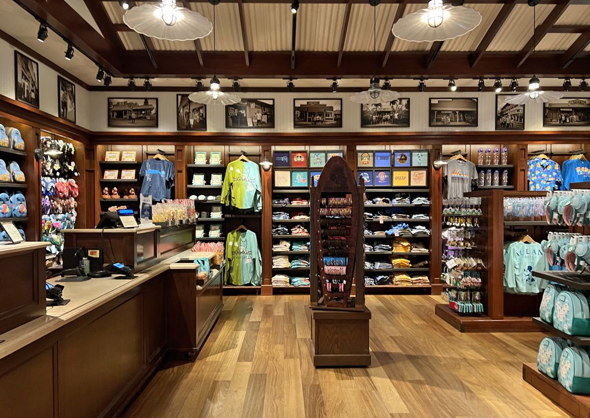 アウラニ限定のレア・アイテムがずらりと並ぶ「カレパ・ストア」も見逃せないショップのひとつ。「カレパ」とはハワイ語で「商人」の意味。オアフ島の伝統的な雑貨店をイメージしたカジュアルな雰囲気の店内には、ディズニーキャラクターのぬいぐるみやロゴ入りグッズ、アパレルをはじめ、滞在中に必要なフードやドリンク、日用品などが揃います。