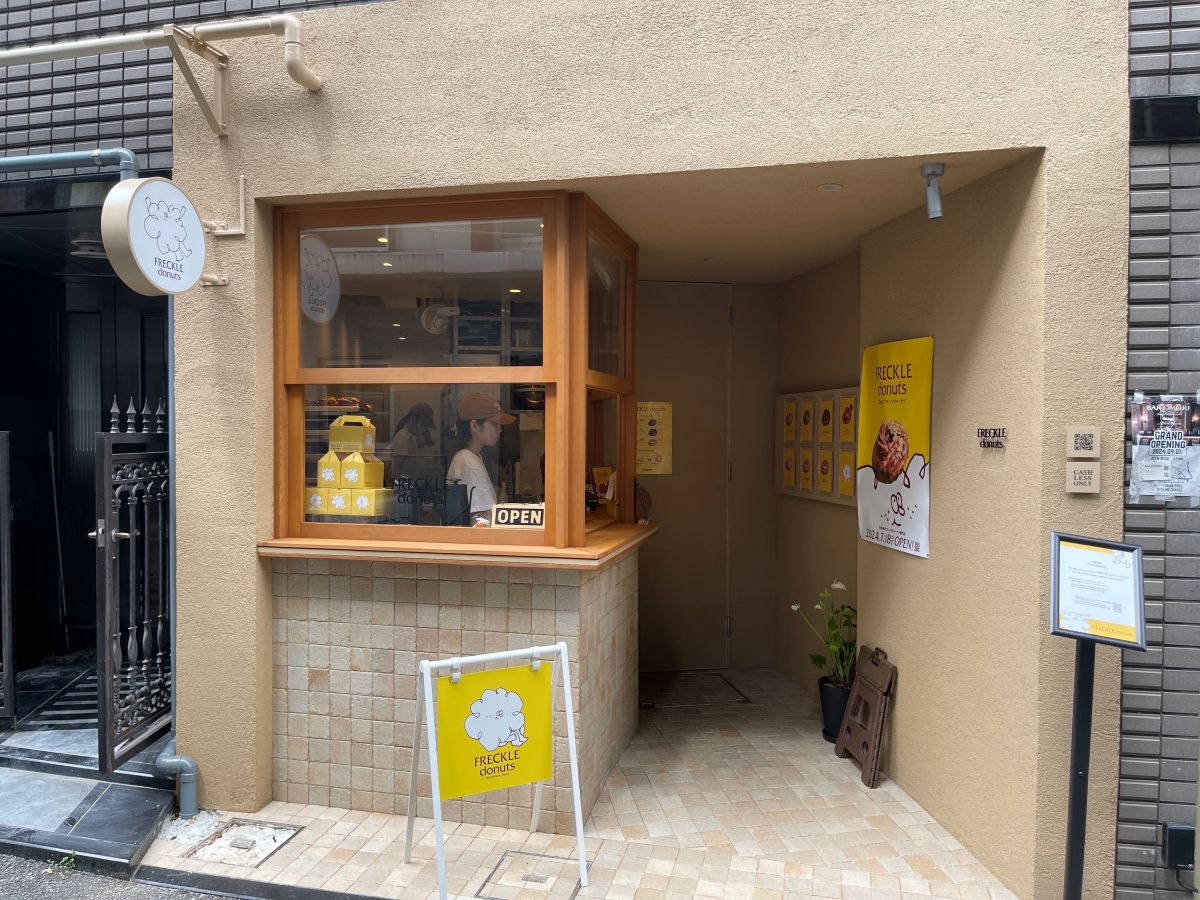 東京メトロ代々木公園駅から徒歩3分ほど。「FRECKLE donuts」は、パティシエが手がける本物志向のフレンチクルーラーが楽しめるテイクアウト専門店。