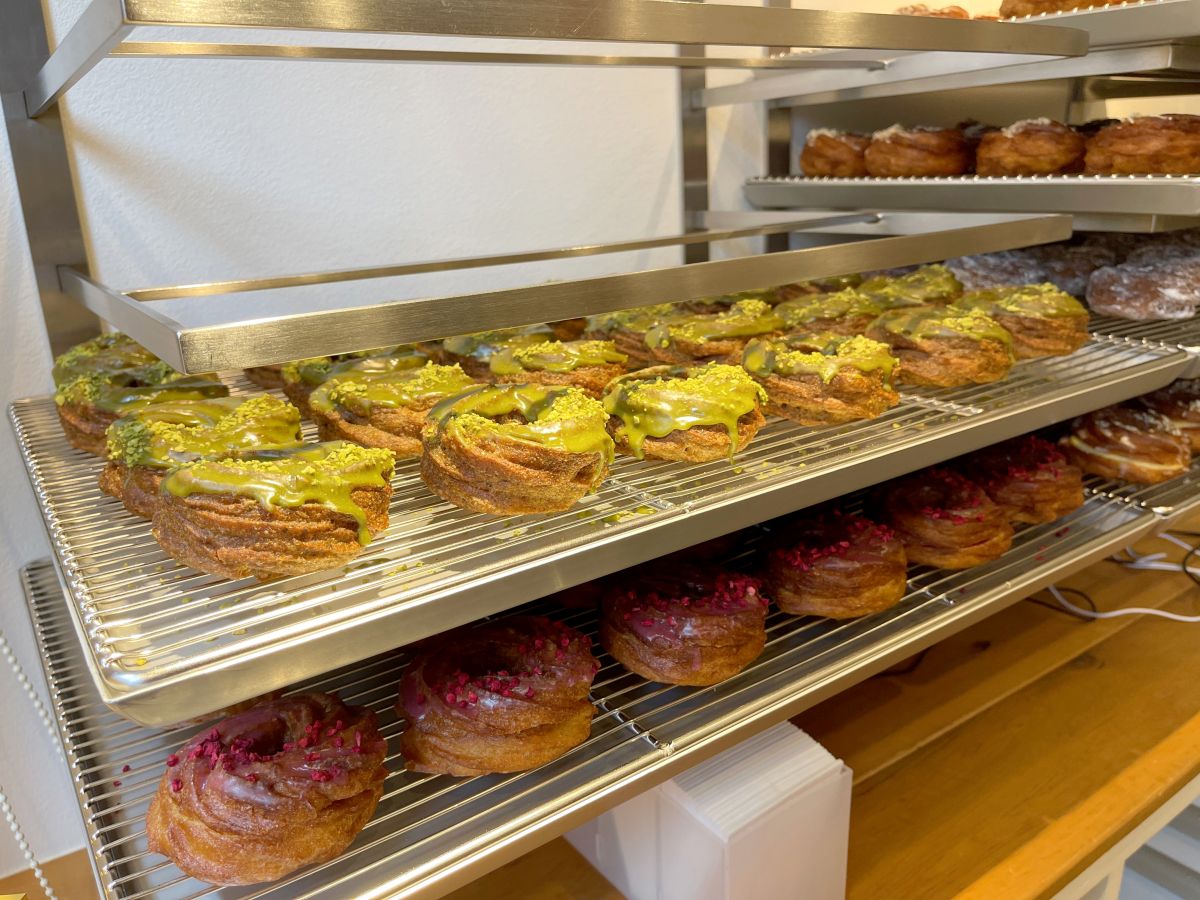 取材時(2024年8月)は、北海道・十勝の「ときいろベリーファーム」のフランボワーズを使用した、鮮やかなフレンチクルーラーが並んでいました。