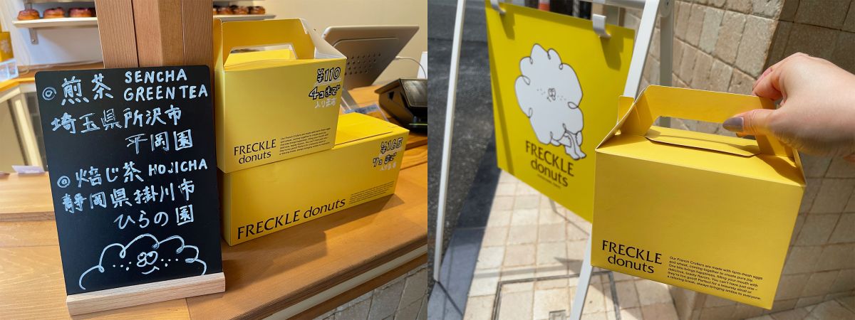 「FRECKLE donuts」で用意されているドリンクは、コーヒーではなく日本茶なのも特筆ポイント。代々木公園付近はおいしいコーヒーショップが多いエリアということと、日本で生産されている飲み物を提供したい、との思いから、あえてコーヒーではなく日本茶を合わせることにしたのだとか。
