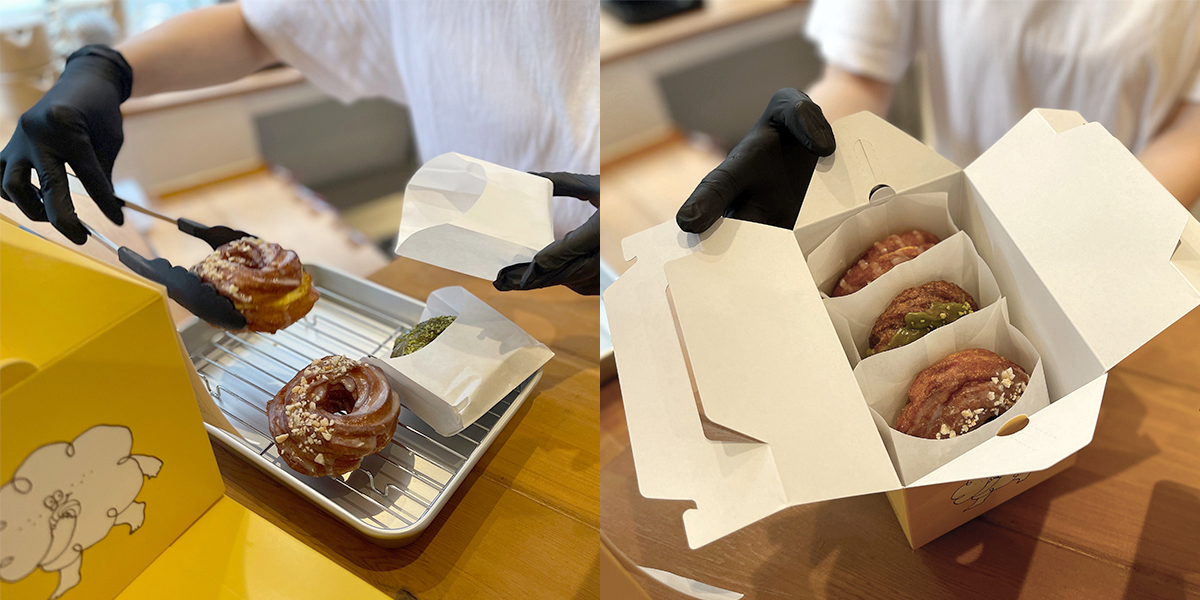 フレーバーに合わせて、それぞれトッピングやグレーズ(表面に塗るツヤ出し)の量を変えたりもしているそう。