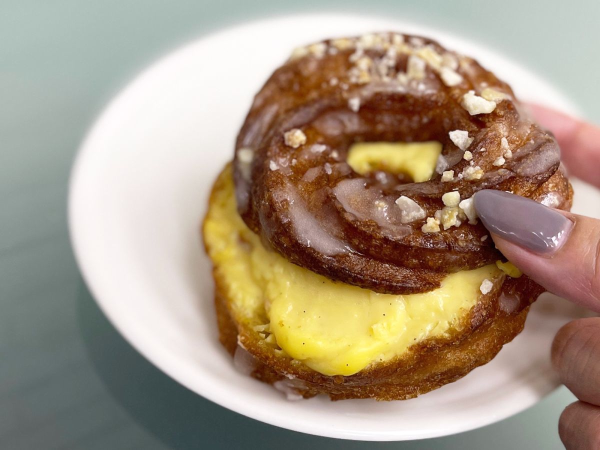 「カスタード Custard Cream」は、こだわりの卵を使用したクリームがたっぷり。濃厚なカスタードクリームに加えられたサワークリームのほのかな酸味が、生地のおいしさをより引き立てます。