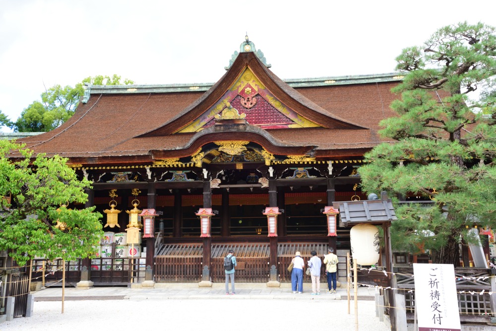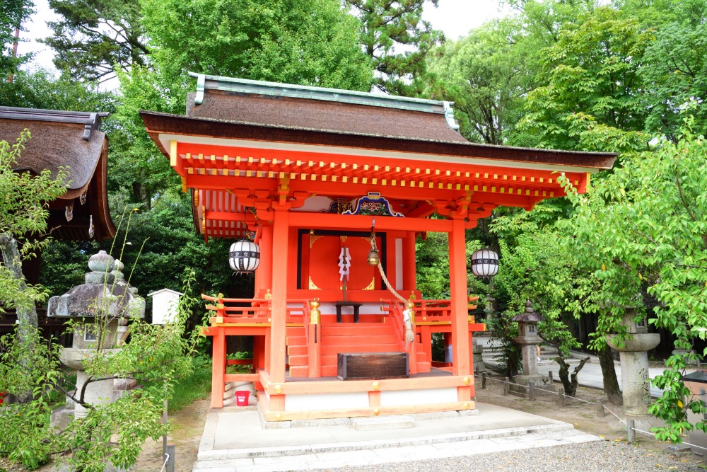 北野天満宮の境内には、御本殿を囲むように50の摂社と末社が建ち並んでいます。こちらは、北野天満宮の創建以前からある地主神社。天神地衹の神々をお祀りする神社で、一の鳥居から続く北野天満宮の参道は、もともと、この地主神社へと続く参道として整備されたものといわれています。御本殿と合わせて参拝しましょう。