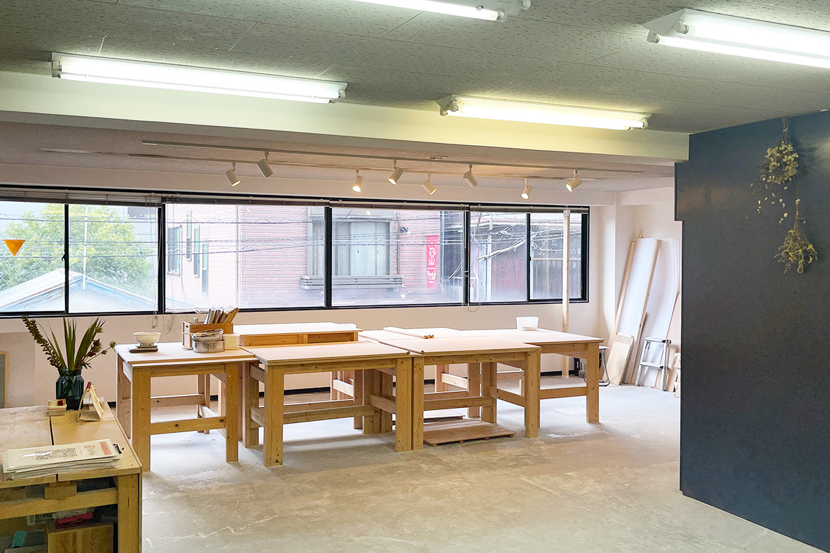 スタジオ内にはそばを打つための延し台(のしだい)が並びます。