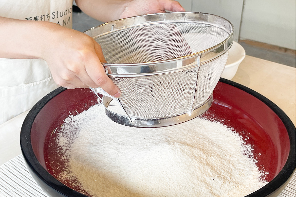 今回使用するそば粉は神奈川県秦野産のそば粉。レッスンで使用するそば粉は旬によって変わるのだそう。レッスンでは厳選された良質な国産そば粉を使用した十割そばを打つことができます。