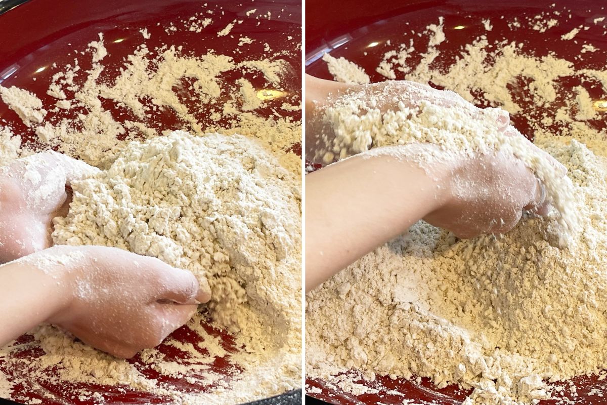 両手で圧をかけて揉んでいくうちに、だんだんと粉がまとまってきました。