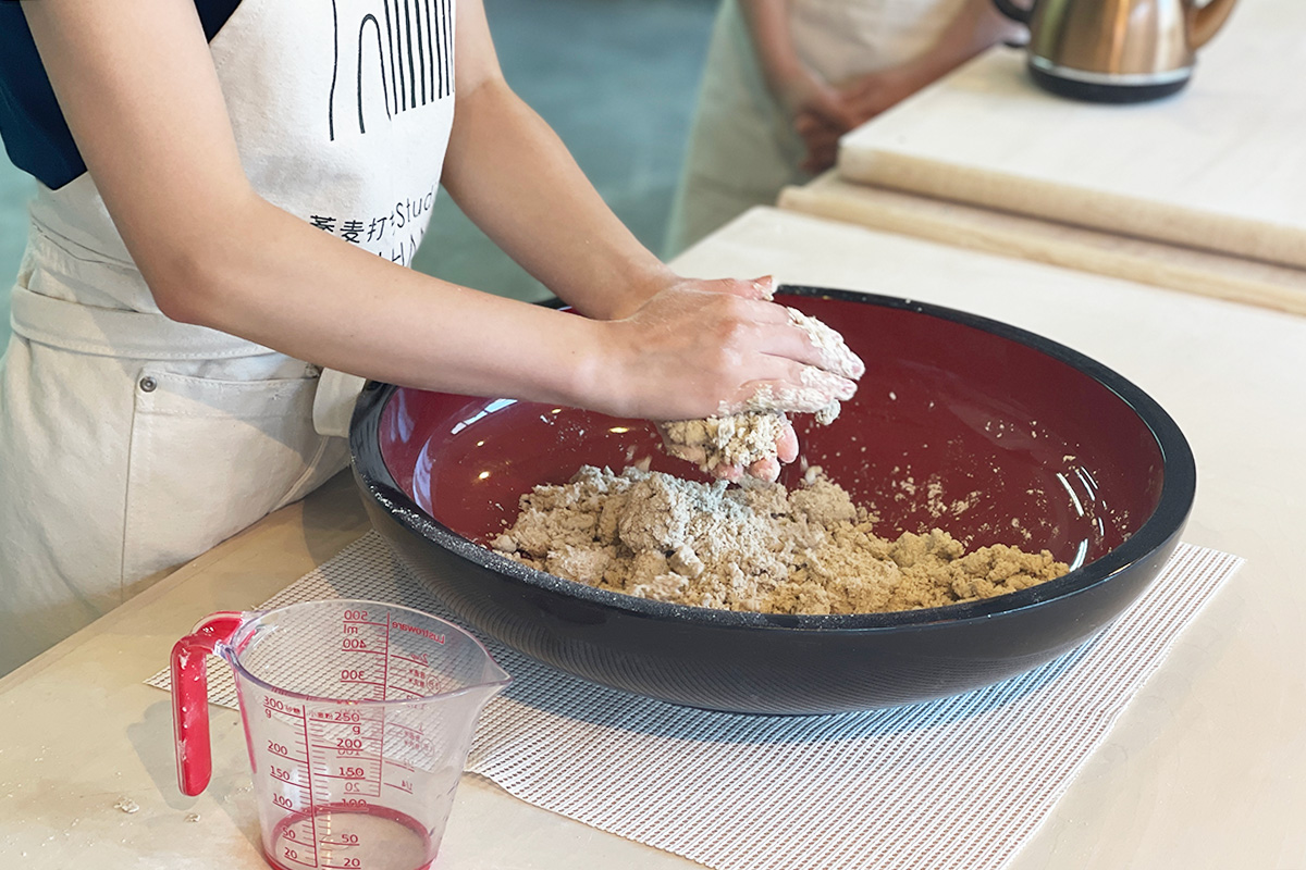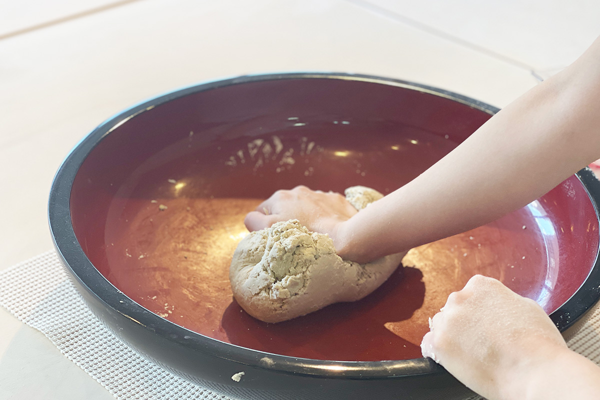 水を足して、揉んでいく工程を何度も繰り返していく間に、すっかりそば打ちに夢中に。