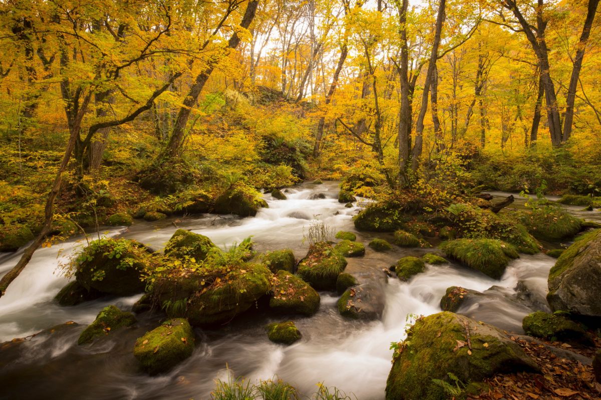 ⼗和⽥⼋幡平国⽴公園を流れる奥⼊瀬渓流は、秋になると、ブナやカツラをはじめとする100種類以上の樹⽊が⻩⾦や朱、⾚に⾊づき、絵画のように鮮やかな景⾊が広がる、日本屈指の紅葉の名所です。そんな美しい紅葉を貸切露天風呂で楽しんでみませんか?
