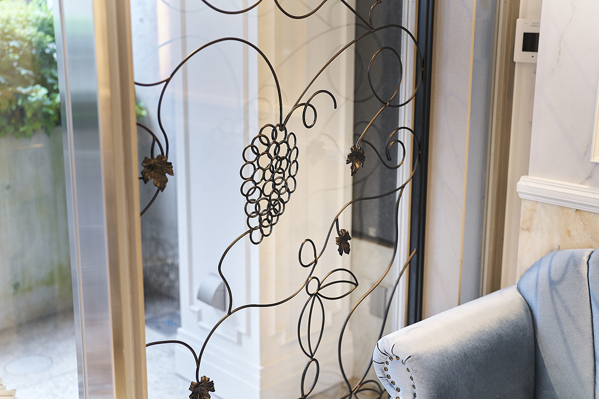 コロンバンの歴史を感じられる装飾もあります。入り口のガラス窓には、昭和6年(1931)に銀座コロンバン本店が開店した際に使われていたぶどうのアイアン装飾を、現代風にアレンジしたものがデザインされています。