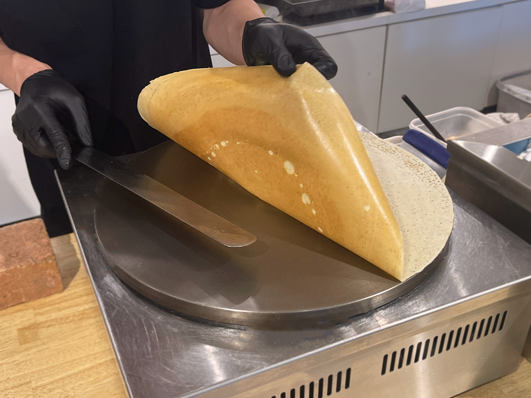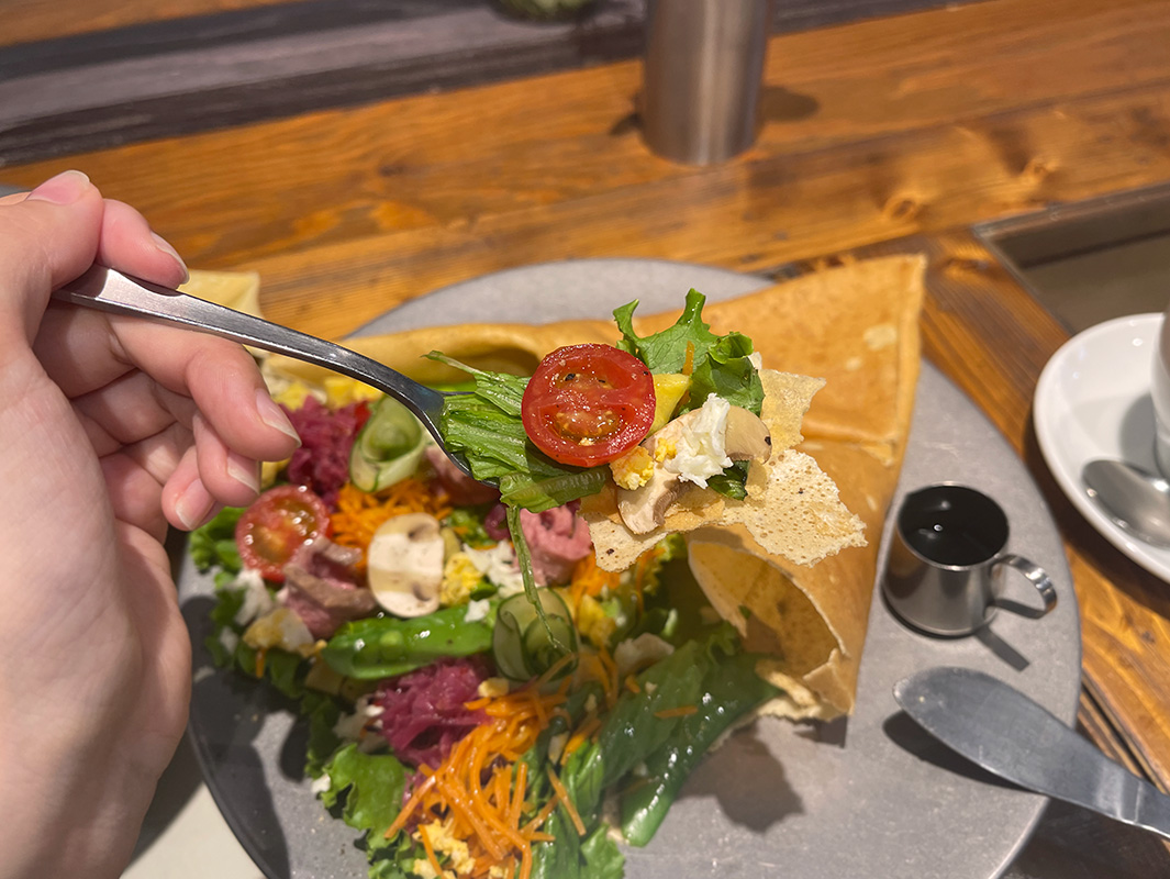 クレープ生地はパリパリサクサク。野菜はすべて新鮮なものを使用しているので、フレッシュなシャキシャキ食感を楽しめます。