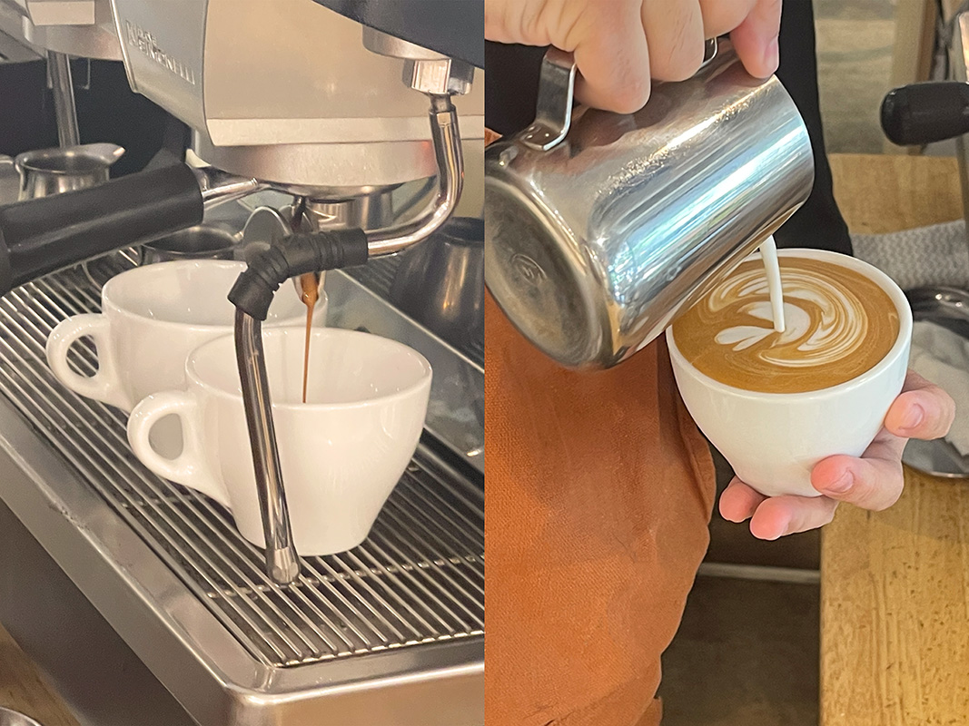4種類の豆をブレンドした独自のエスプレッソを、日本人の口に合うよう中深いりで使用しているため、コクがありまろやかで飲みやすい「カフェ・ラテ」。