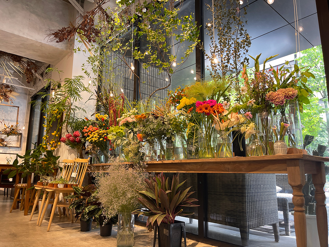 スタッフ厳選の花が揃う併設のフラワーショップにも注目