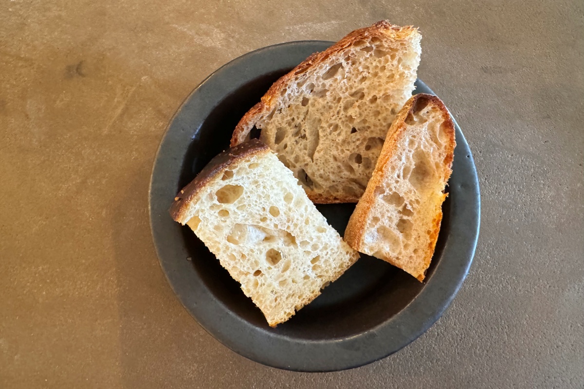パンは、パン飲みもできることで人気のベーカリー「チェスト船堀」のもので、カンパーニュ、バゲット、フォカッチャが盛られています。