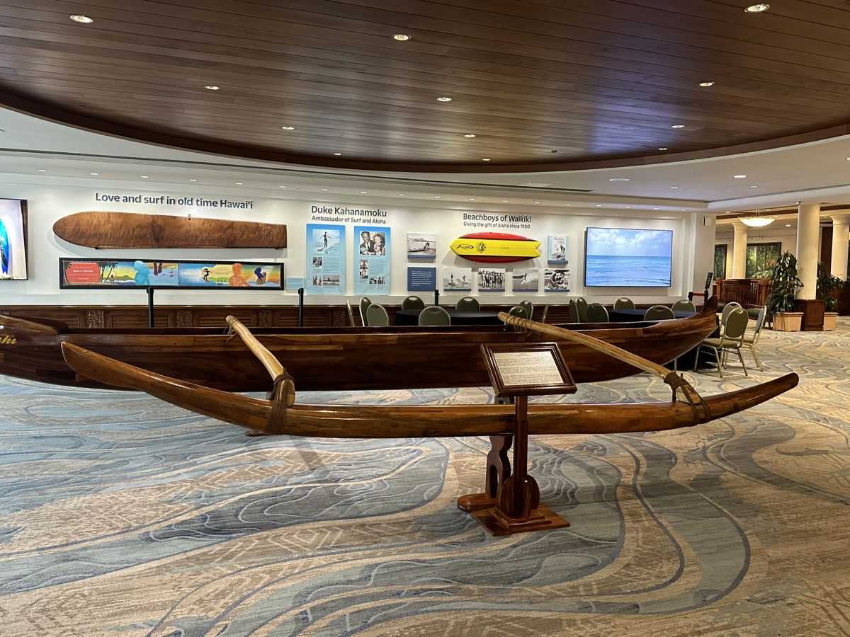 このホテルは、かつて「現代サーフィンの父」と称されたデューク・カハナモク氏が所属していた旧アウトリガー・カヌー・クラブの跡地に建てられています。館内には、デューク氏に関する展示やスポットがいくつかあり、彼の歴史に触れることができます。