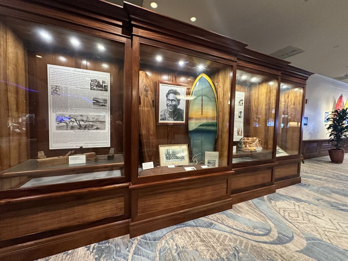 ロビー階の2階には、デューク氏に関する歴史年表やボードが常設展示されています。ホテルの無料アクティビティの一つである「サーフツアー」では、英語でのツアーながら、サーフィンの歴史やデューク氏の生涯について学びながら、展示物についても詳しく説明を聞くことができます。