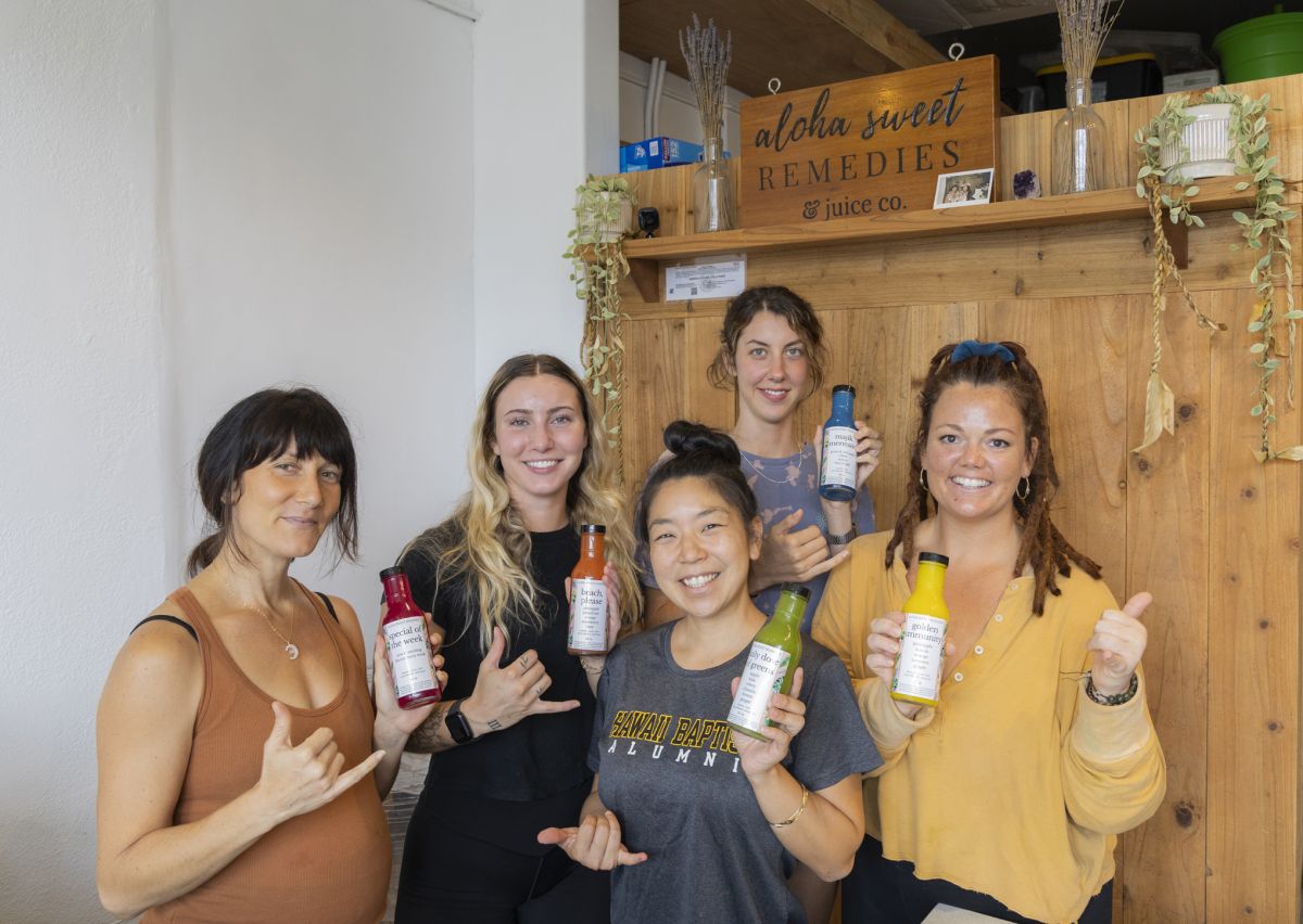 ロコご用達の「アロハ・スイートレメディーズ&ジュースカンパニー」は、ハワイのママ2人がスタートした自然派のジュース屋さん。栄養コーチとしてコールドプレスジュースを作っていたジャッキーさん、持病のある息子さんのために抗炎症・抗酸化作用を持つといわれるエルダーベリーシロップを作っていたヒラリーさんがコロナ渦を機に起業、ファーマーズマーケットで一躍人気となり、2023年9月に実店舗となるカイルア店をオープンしました。