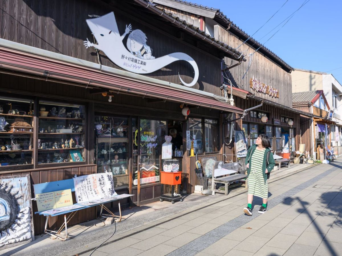 妖怪グッズのおみやげショップや食べ歩きできるような串焼きなどが売っている飲食店が並び、のんびり回るにはぴったりの街並みです。