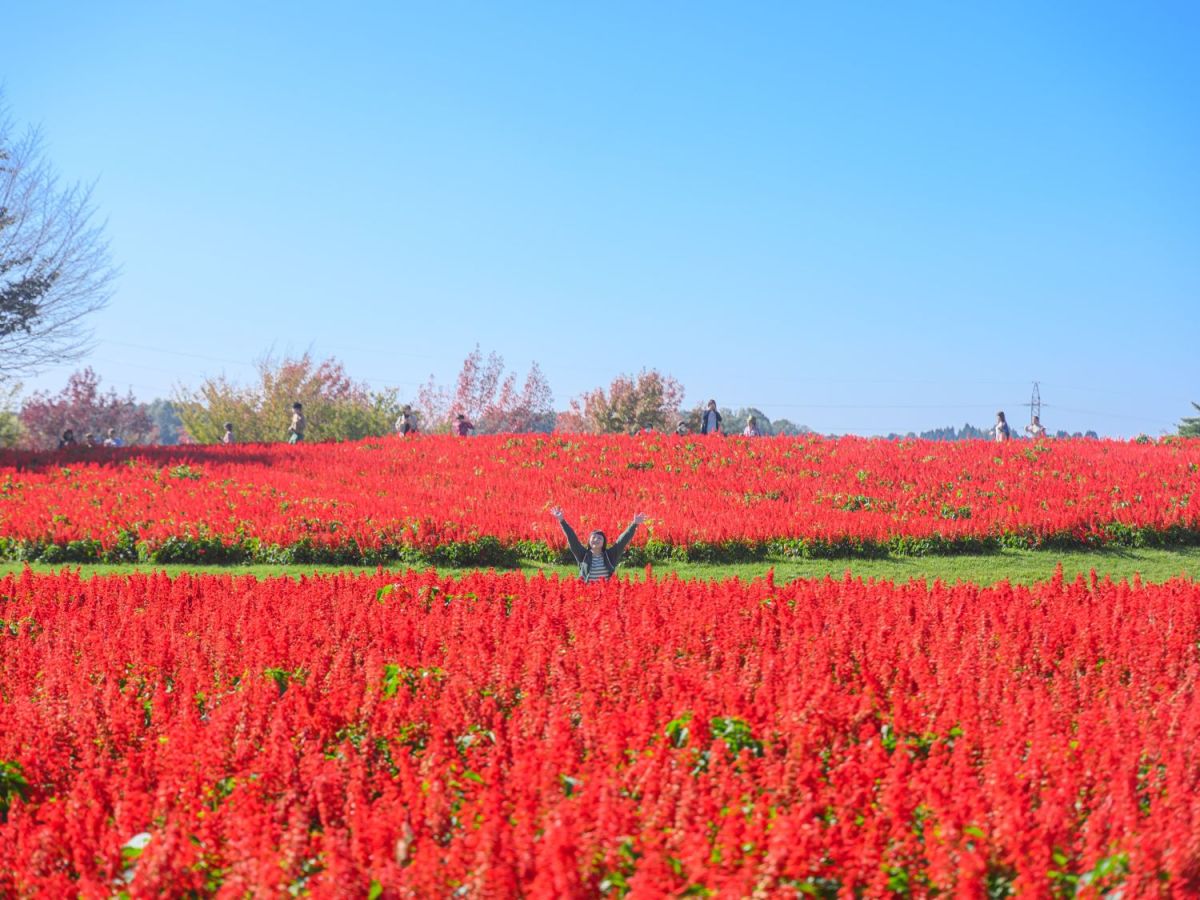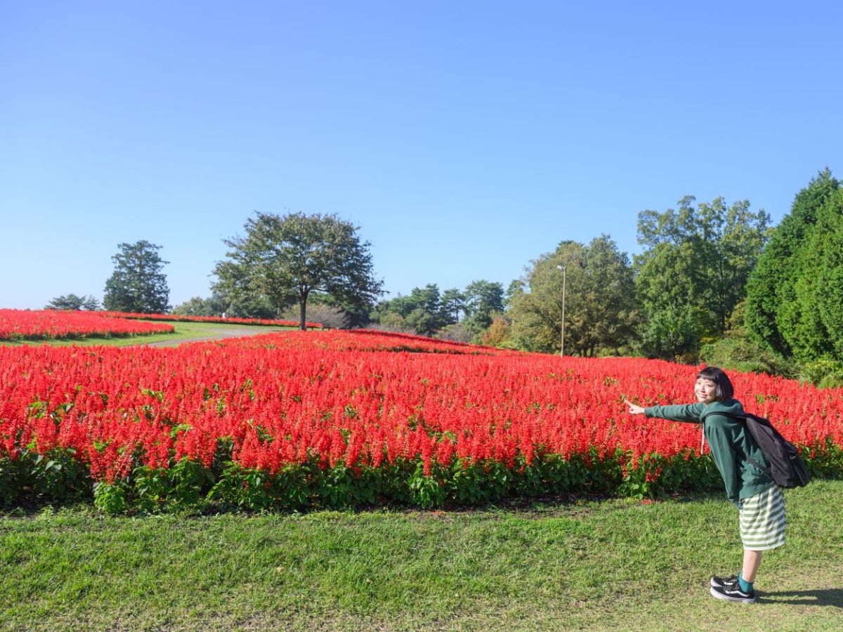 例年11月中旬頃まで楽しめる秋のメインスポットはサルビア畑!とにかく広い!(なんと1万㎡!)写真だけじゃ伝わらない、この圧倒的なスケール感を、これを読んでいるあなたもぜひ。