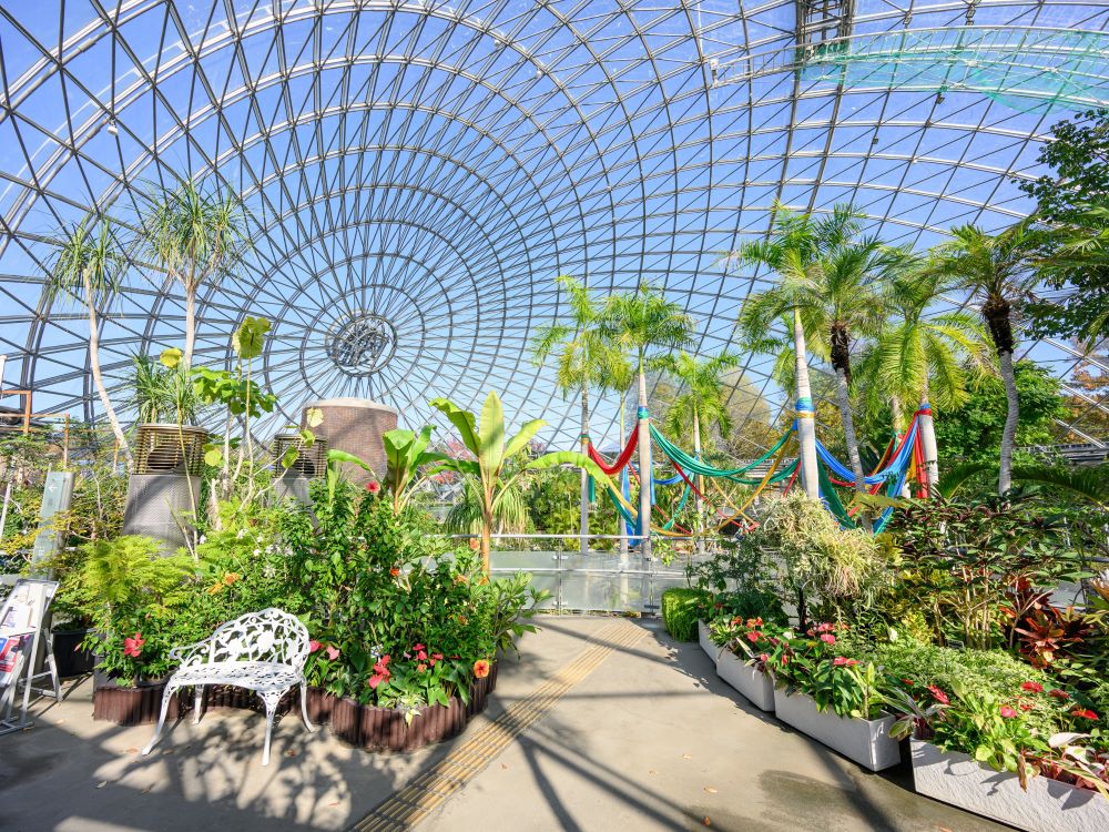パークの真ん中にあるドーム内は温室になっていてリゾート気分を味わえます。