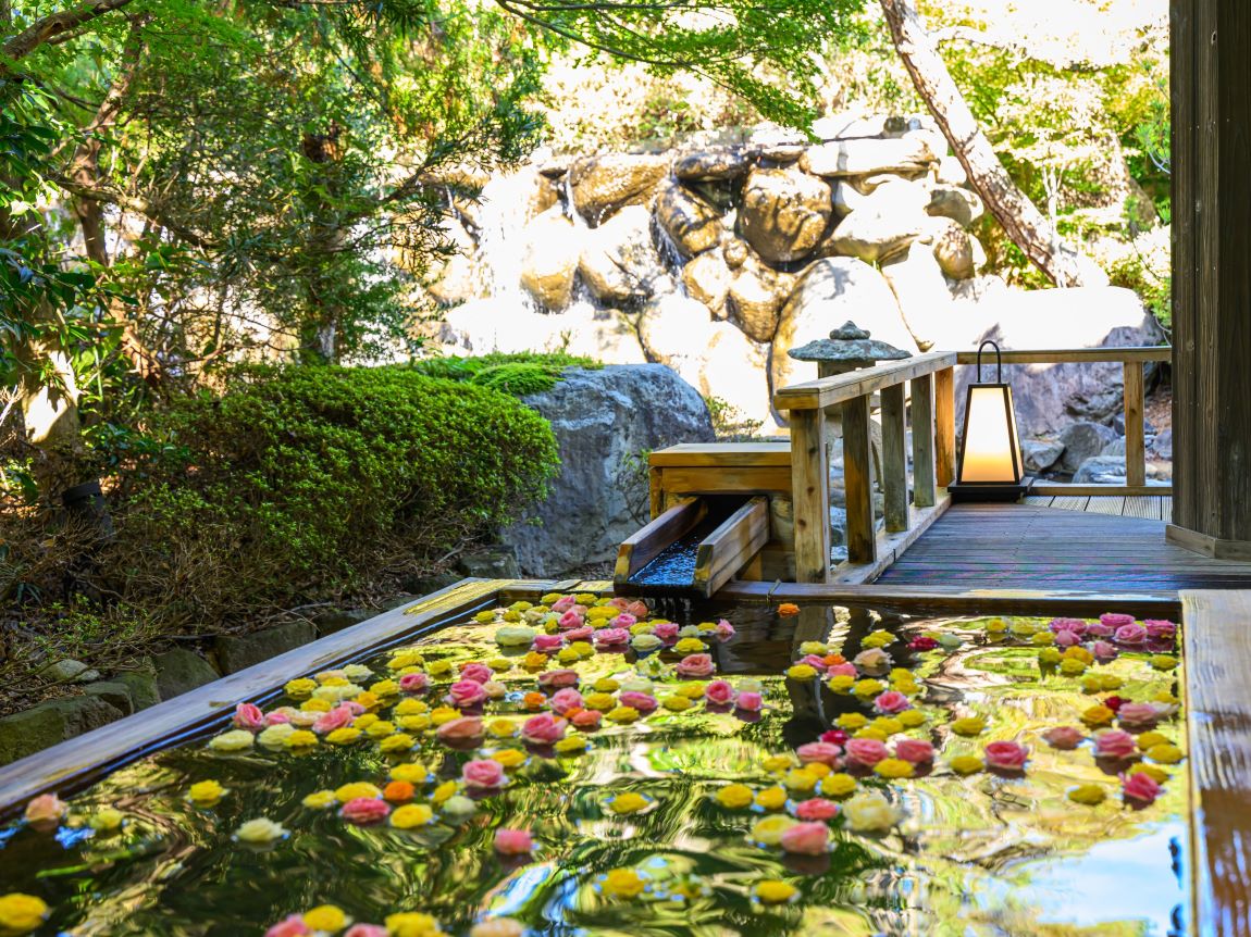 このバラ風呂以外にも数々の露天風呂や内風呂があり、素敵な日本庭園の景色と共に身も心もほぐれる最高の時間が過ごせること間違いなしです。